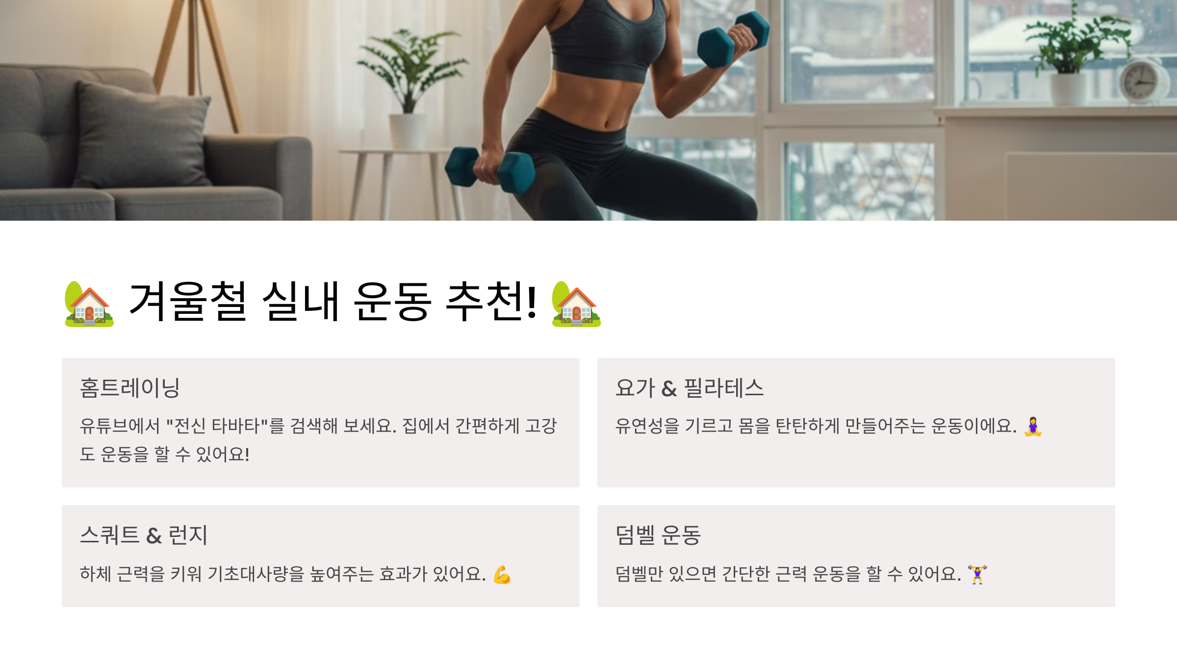 🏡 겨울철 실내 운동 추천